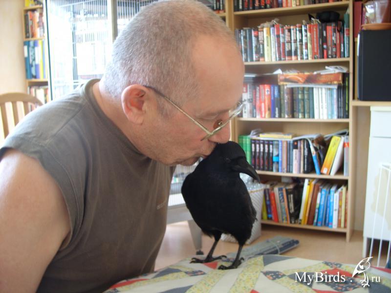 capitoshka Опубликовано 11 июня, 2012 Автор #7 Опубликовано 11 июня, 2012 Это не слёток, это птенец. Поведение абсолютно нормальное. В этом возрасте он должен кушать, какать и спать. Ему расти надо. То, что Вы увидели, это жировой нарост. Птица смачивает клюв жировым выделением и чистит им перья. Летать он начнёт, но не так скоро, как Вам хочется. Сначала сверху вниз, потом немного по прямой, а уж только потом сможет лететь вверх. Но что бы всё было нормально сейчас ему необходимо качественное питание. Обязательно прочтите и кормите так, как здесь указано: http://www.mybirds.ru/forums/index.php?s=&...st&p=549648И лично совет от меня, ни в коем случае не повышайте голос на птена даже если он сделает что то не так. Он и так в стрессе, попал в чужую семью. Но если он будет окружён любовью и заботой, станет Вам самым верным другом. С уважением, Ладо. Это чёрная ворона Жоржетта. На снимке ей около года. Когда мы встретились была чуть старше Вашего Гарика. Сейчас ей уже больше двух лет и я в ней души не чаю. Вороны - это чудо. Большое спасибо Вам за ответ и участие. Ваша Жоржетта очаровательна, регулярно заглядываю в Вашу тему. В смысле кормления мы как раз и придерживаемся рекомендаций форума. Кричать и ругаться на ребёнка, конечно же, никто не собирается, но у нас кроме него ещё две собаки, да и просто в доме бывает довольно шумно, так что к громким звукам ему как-то придётся адаптироваться. А летать он, по всей видимости, уже начинает.С уважением, Алёна. Да, скажу сразу, чтобы не пугались еще раз: у ворон у основания языка тоже есть небольшой "прыщик". Это нормально.А что настораживает? Хороший у Вас Гарик)))) Сурьезный))). Единственное, мне розоватое на лапках не очень нравится, но, надеюсь, пройдет. Спасибо большое, что разъяснили! Я предполагала что-то подобное, но нашлись тут поблизости паникёры... А розового на лапках уже нет. Фотография была с неделю назад сделана, я стала смотретьего ножки, сейчас они чёрненькие, ну края у чешуек светлее немного. А настораживало по-началу именно то, что он малоподвижен и не летает. Но буквально с сегодняшнего дня у нас проблема обратного характера. Он внезапно так прекрасно полетел, что приземлился у соседей за забором. Всё обошлось, слазили за ним, но теперь я ума не приложу, как же с ним гулять теперь... Каждый день лазить по заборам и деревьям желания нет, да и махнуть он сможет запросто и повыше куда-то, и просто улететь. Он же, наверное, уже не выживет в таком случае. Как правильно выгуливать ворону? Очаровательный малец! Хорошо, что Вы бдите, но мне он кажется абсолютно здоровеньким. Что не так-то? Спасибо за участие! да с ним всё в порядке, видимо, что он сегодня нам очень наглядно продемонстрировал. :-)