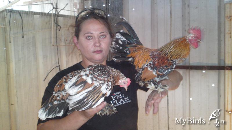 Белый Клык Опубликовано 18 сентября, 2012 #7 Опубликовано 18 сентября, 2012 Можно я отвечу? Перечисленные Вами породы называются бантам. А бентамка, это беспородная карликовая курица. Посмотрите, пожалуйста, фотографии в этом посте, к какой породе Вы сможете отнести этих кур?http://www.mybirds.ru/forums/index.php?s=&...t&p=1306529 Забыл уточнить, ячея решётки 5х5 см, можно приблизительно судить о размерах птицы. Все же позвольте не согласиться с вами. Беспородная курочка не зависимо от размера называется метис или же специально выведенная гибридная форма- кросс.Dutch_Bantam_Pullet-Голландская бентамка. Или же более точное определение из википедии-Бента?мка, или банта?мка (англ. Bantam), — карликовая порода домашних кур. Родом из Азии (Индонезия, Китай, Япония).Далее идет породная принадлежность курочки бентамки.Различают следующие разновидности бентамок: бантамки Сибрайта японские бойцовые пекинские черные и белые нанкинские ситцевые ореховыеЖивая масса петухов — 0,6—0,9 кг, кур — 0,45—0,65 кг. Яйценоскость — 90—150 яиц в год. Развит инстинкт насиживания. Наряду с курчавыми, чубатыми и лохмоногими породами кур отнесена к группе декоративных. С породной принадлежностью с ответом затрудняюсь. Так как каждая из представленных на фотографии птиц несет совершенно разные признаки. Есть и чубатость и окрас голландской ...............И развернутые и собранные гребни. Гребень петуха вообще сложно понять.......