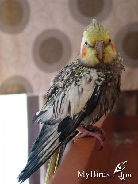 Это Джолька после купания (девочка все-таки, переназвала вот. Надеюсь с переименованиями покончено, а то птица вконец запутается из-за хозяйки :huh1: )