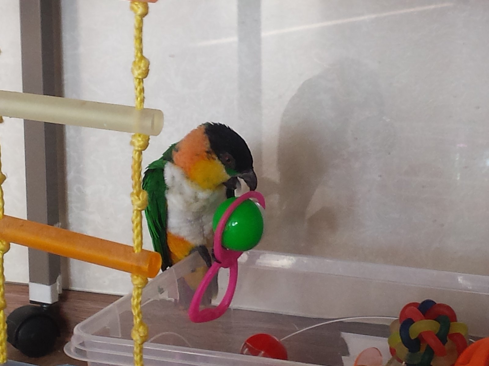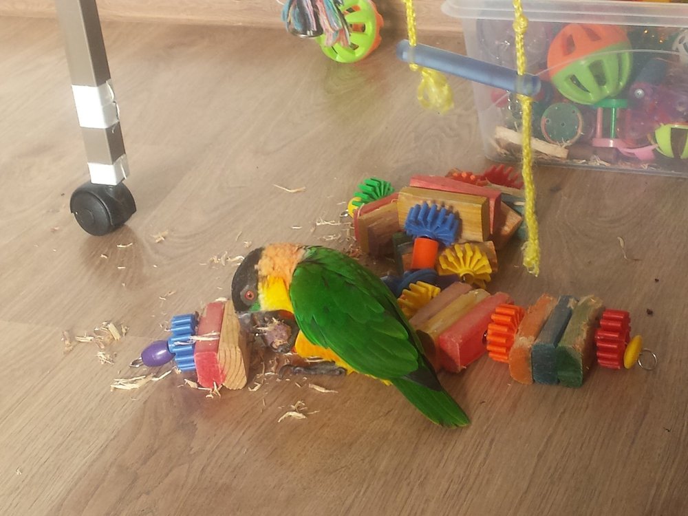 Victori Опубликовано 29 июня, 2018 Автор #160 Опубликовано 29 июня, 2018 Здравствуйте! Взросление не сильно изменило нашу жизнь.Стоит отметить такие моменты,как появление крикливости и непослушания.Но это,я думаю,временные трудности.У нас другая проблема,не связанная с возрастом.Всю осень и зиму носила носки.И с наступлением тепла этот коршун начал охотиться на голые ноги.Ему категорически не нравятся именно пальцы.Нападает и открыто и из засады.При удачной попытке-кусает до крови. Незнаю уже как бороться..Спасает чем либо укрыть ноги.Но это сугубо индивидуальный бздык.)) Когда мы только переехали,жили какое то время у родителей.Вначале у Кеши возникла с маман прям любофф,почесоны и все такое.Однако вскоре чувства иссякли и он увидел в ней врага. И эта вражда длилась все время,пока мы там были.Она не могла войти в комнату,где мы с ним тусовались.Как только появлялась на пороге,Кешка испускал дикий вопль и пикировал,стараясь приземлиться на голову,маман приседала,и он шел на второй круг,маман спасалась бегством.К отцу и сестре относился лояльно.При чем сейчас,когда мама приходит в гости,он на нее ноль внимания,былая вражда забыта.На счет пары..Я тоже подумываю об этом.И тоже в сомнениях..Мой птиц вполне самодостаточен,играет с игрушками,носится по полу,летает,или на мне сидит чистится.Чтобы ему было скучно вроде бы не похоже. А по поводу совместимости однополых попиков,здесь видела подобные темы,почитайте.А вот если разнополые попадутся,далеко не факт,что сложится пара и будут птенцы,поэтому зря опасаетесь,у каиков с размножением не так все просто.