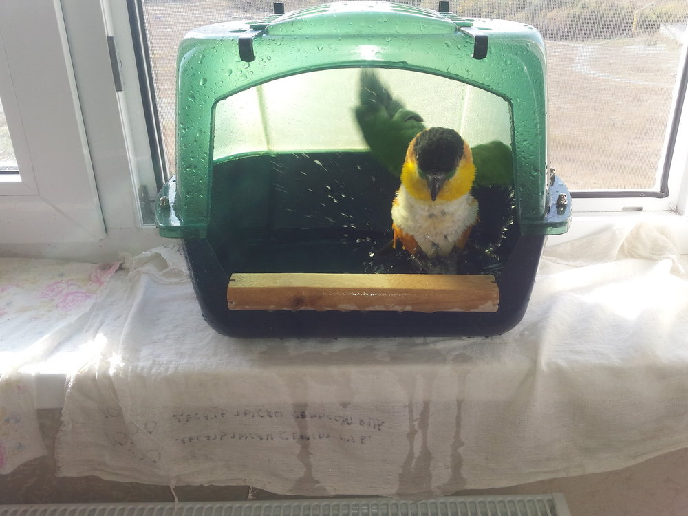Victori Опубликовано 6 июля, 2018 Автор #176 Опубликовано 6 июля, 2018 Нет,не по этой причине.Ставлю всегда на подоконник,на солнышко.Ибо,ни малейшего желания устраивать в клетке филиал Индийского океана не имею)))Кеша плещется в ней,как стая бешенных касаток,так что большая часть воды на полу(туда сразу стелется тряпка).Вешать ее на клетку даже не пробовала.Купаемся под настроение.Если его светлость расположены попу полоскать-сам несется в купалку и приглашать не надо.Но если не хочет...бесплезно уговаривать,подносить его к ней,заманивать игрушками,максимум- это нагадит внутрь и улетит)) Примерно раз в неделю изъявляет желание.