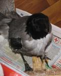 Zocus Опубликовано 26 сентября, 2013 Автор #165 Опубликовано 26 сентября, 2013 Всем врановодам и их питомцам доброго здравия!Что-то мне показалось, что я давно тут не появлялся, сижу безвылазно на работе по 12 часов в сутки и на форум времени вообще не остается, но I'm back.Постараюсь вкратце рассказать что у меня происходило за эти 4 месяца.Сначала грустная новость, недоощипанная глазастая чуда умерла на следующий день после моего последнего поста. Видимо какая-то патология, птицы обычно себя так просто не бреют налысо. Поня меня корила, за то что я ее не отнес на вскрытие, но мне было не до этого. Слава богу, патология оказалась не заразной.Затем в начале июня я подобрал еще одного серенького слетка с оспой и разрывом воздушных мешков: выглядел как шарик. Оспу вылечил, мешки сами заросли, Телька взяла на себя воспитание детеныша (включая кормление !!! ) после чего в один прекрасный для птица и грустный для меня день, пролетев всю квартиру насквозь, он упорхнул в форточку. Но история надеюсь кончилась благополучно. Полетав пару дней по окрестным крышам, он примкнул к местной стае: я его видел потом через неделю в компании дворовых ворон, уже в одной опутенке, после чего след потерялся, видимо догрыз оставшуюся. С учетом того, что я уделял ему минимум внимания, а после 2 недель медицинских издевательств доверия к человеку у него наврядли прибавилось, надеюсь ему сейчас на воле живется лучше чем в клетке.Ровно месяц назад подправив траекторию крадущегося кота ботинком (да простят меня кошколюбы) от пересечения с галкой, подобрал последнюю и притащил домой. Галка сломана в верхней конечности. Перелом мерзкий: сломана плечевая кость у локтя, проксимальная часть кости торчит наружу, сам локоть с дистальным обломком смещен к плечу сантиметра на полтора. Сама тощая как тень мамы Гамлета (155г) и лысая местами. Но по характеру милейшей души птица. Спокойная и нифига не боится, даже засыпает сидя на руке. А две недели назад подобрал еще одного инвалида. Тоже галк. Накануне я его видел прыгающего со сломанным крылом, но не взял, а на следующий день, пошел на птичий гвалт: стая галок гоняла по дереву двух ворон, а внизу распластался мой вчерашний знакомый, но уже с открытым переломом цевки на одной лапе и как выяснилось потом, с повреждением пяточного сустава на второй, судя по характеру повреждений постаралась кошка, которая успела не наткнуться на ботинок. Переломанное крыло (тоже плечевая кость) уже срослось и внимания не требует. В итоге сейчас лежит на пузе в карантине, лечится. Лапа (та что не сломана) вроде начинает потихоньку заживать, во всяком случае он на нее начинает потихоньку опираться. Очень надеюсь, что он сможет сидеть хотя бы на одной, иначе... печально в общем иначе.Телли - балбесина, так и остается полудикаркой, сидит на руке, видно что балдеет от почесончиков, но при малейшей возможности старается удрать к себе в вольер. Перелиняла, потолстела, стала походить на нормальную ворону.Такчто у меня сейчас три инвалида: Телли, Мисти и Лакки.Пока все, надо еще поработать, постараюсь в ближайшем будущем рассказать поподробнее.