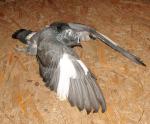 N.M. Опубликовано 26 октября, 2012 #1 Опубликовано 26 октября, 2012 Добрый вечер....уже почти две недели у нас живет голубь.Тогда целый день шел сильный ливень, заметил насквозь мокрого голубя, который полз на животе, "загребая крыльями", лапки были вытянуты вдоль тела и не двигались.Подумал- может, машиной ударило- обсохнет и оживет? Решил забрать...Поместил в картонную коробку, почитал, чем правильно кормить, высушил.Понес в ветеринарку, там все больше по собакам- кошкам... но посоветовали ухаживать, делать массаж лапок, сказали что должен отойти, т.к. кости целы и повреждений не видно. В воду добавлял глюконат кальция (крайние пару дней перестал давать).Внешний вид вполне обычный, ест, пьет, помет не жидкий- плюха, черный с белым когда даю семочки, или оливковый когда гречка, перловка и ост. крупы.Первые пару дней практически все время лежал на животе, был апатичен и неактивен, но ел и пил.Постепенно в ногах появилась активность- активно брыкается или наоборот оттягивает ноги на себя, сгибает пальцы. Летает потихоньку. Может с пола, оперевшись на крылья, взлететь и пролететь по коридору, или на стол, или на подоконник.А на лапки не становится- как будто силы нет встать на лапки.Последние 5 дней стал каким то беспокойным. Надоела коробка, пытается вылететь из неё, всё время хлопает крыльями. Начал ломать перья на концах крыльев- т.к. постоянно на них опирается. И еще. Последние дни появилась привычка перевернуться на спину и лежать так, даже спать, хотя вполне, если бы хотел, мог бы переворачиваться на живот и лежать на животе- см. фото.Уже почти 2 недели... а у нас даже балкона нету. Содержать дальше сложно- условий нет, хотя сделал максимум то что мог- пересадил из коробки в детскую палатку, целый вольер получился... теперь он там спит (чаще на спине), ползает на животе опираясь на крылья и "упражняется", пытаясь выбраться, подлетает вверх в сторону окошек, принимая вертикальное положение тела. Когда держу в руках- ногами брыкается, сгибает пальцы и оттягивает ноги на себя, довольно упруго и активно. Но встать на лапы совершенно не пытается, хотя при движении перебирает ногами, шевелит. А чаще, когда двигается строго вперед, ползя на животе и крыльях, ноги вытянуты назад вдоль тела и неподвижны (см. фото). Выпустить сейчас- пока что все равно что приговорить. Улетит куда нибудь, там на пуз опять упадет. И первый же кот его слопает.Что за болезнь такая? Отойдет ли? Можно ли как то ускорить выздоровление? Сколько может длиться такое состояние, до тех пор, пока не начнет становиться на лапки, и начнет ли? Может, такие случаи не редкость- просто я не знаю?Словом, одни вопросы... Вот, зарегистрировался- может подскажет кто чего по существу...Спасибо!пс. Прошу модераторов убрать мои посты из параллельной темы http://www.mybirds.ru/forums/index.php?sho...p;#entry1406820 Приношу извинения топикстартеру за то, что присоединил свой вопрос и обобщил темы.