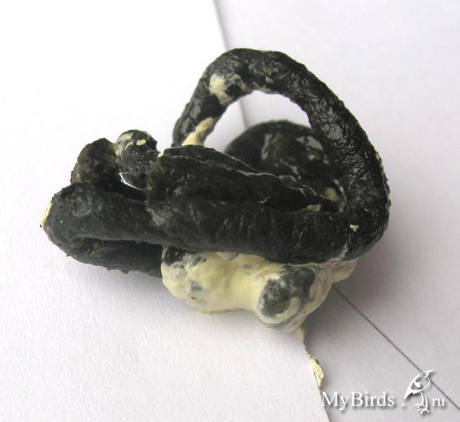 N.M. Опубликовано 3 ноября, 2012 Автор #25 Опубликовано 3 ноября, 2012 Вот помет, сегодня шестой день лечения. И три недели, как голубь находится у нас. Позитивных изменений никаких. Последнее время лежит в одной позе, практически не двигается. Передвигается, если его к этому принуждать, так же как и раньше, ноги словно чужие. Для меня это странно... все таки, за три недели хоть какая то динамика должна же наблюдаться- хоть негативная, хоть позитивная.Когда еще летал, я точно не помню, в каком состоянии находился хвост... но мне кажется, в закрытом- не открывал. Могу ошибаться.Кстати, сколько вообще дней давать рекомендованные препараты, какова длительность курса лечения?У меня были вопросы по видео... никто ничего не может сказать?
