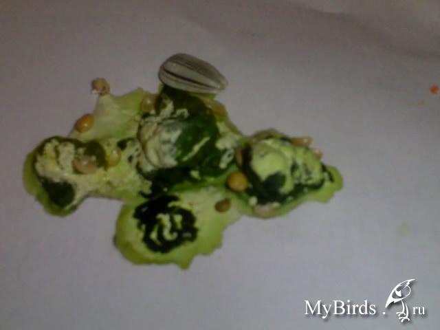 Dobermann Опубликовано 27 декабря, 2012 Автор #97 Опубликовано 27 декабря, 2012 (изменено) Даю в поилку лактобактерин. То ли от него, то ли от другой причины у здоровой самки Урри помет стал похож на Чупа Чупсовский. Урри: Чупа-Чупс: У меня две версии пока, кроме кокцидоза. 1. Перья хвоста действительно обгрызенные, как минимум - 2 больших рулевых, возможно, птичку обрабортали некорректно ивермектином каким -нибудь и поломали ему почки с печенью. 2. Это все же аскариды, или другие круглые черви , которых находят, к сожалению, не во всех пробах. Если у Урри помет в ближайшем времени не наладится,(что будет говорить за реакцию на лактобактерин), буду думать на глистную инвазию... Прошло как раз 2 месяца... А может быть у него помет зеленее от того, что он активно грызет ветки яблони? Изменено 27 декабря, 2012 пользователем Dobermann