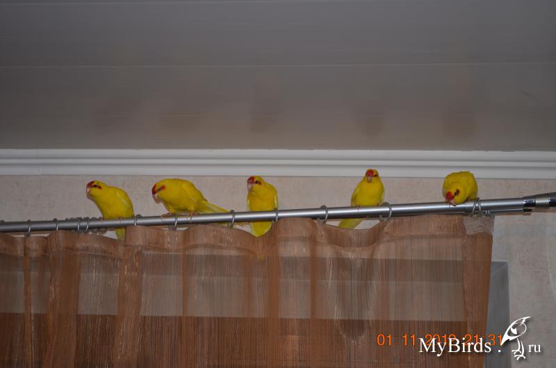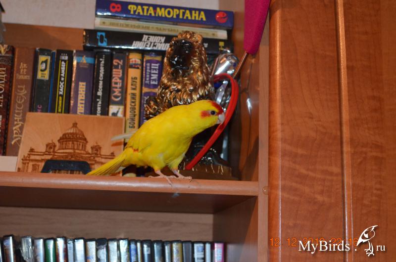 Пушистое солнышко Опубликовано 10 декабря, 2012 Автор #10 Опубликовано 10 декабря, 2012 (изменено) Выкладываю рассказ о том как Тори и Флори стали родителями. А мы с мужем соотвественно бабушкой и дедушкой. )))) Когда муж привез Торику самочку, оказалось что девушка нам досталась до безобразия деловитая. Тори со своим чешским воспитанием, был послан далеко и надолго. Торино робкое коко-куку Флори проигнорировала и пошла есть. Как же она ела! Будто ее год не кормили. Во всяком случае мягкой пищей точно не кормили (муж заезжал потом в тот магазин, там еще один самец оставался, спрашивал продавцов дают ли они птицам фрукты и овощи, девушки очень удивились что это им надо давать, но вроде пообещали, что теперь будут). Спустя пару часов Тори начал подозревать, что девушка есть не перестанет вобще. Она съела все что у Тори было в клетке и потребовала добавки. Глядя на все это, через неделю Тори начал откровенно жадничать и выказывать свое недоволство. Дело запахло керосином. Птицы начали ссорится из-за каждого куска. При чем не из-за того что им их не хватало, а потому что Тори старался отнять все что брала в клюв Флори. Мы с мужем запаниковали по настоящему, сколько было случаев когда один попугай заклевывал другого.Было решено что нужно для начала купить еще одну клетку и побольше на случай если дело именно в тесноте. В зоомагазине я всерьез поглядывала на клетку для бойцовых петухов. Такая просторная, низенькая и с перегородкой. Но все же отдали предпочтение большой белой, с вместительным поддоном и восьмью кормушками. Продавцы узнав для какой это огромной птицы покупается такая клетка впали в нирвану. (наверное потом покрутили у виска рукой). А клетка в итоге все же помогла, парочка успокоилась, то ли наелись, то ли устали воевать. Идиллия длилась недолго. Отъевшаяся Флори, оценив наши усилия решила что условия сносные и можно спокойно размножаться. Мы наивные, чукотские граждане отчего-то были полностью уверенны, что без дуплянки птенцов какарики выводить не будут. Флори наглядно доказала обратное, усевшись на кладку прямо на дне клетки. Пришлось опять нестись в магазин и покупать дуплянку. Так наши какарики, да и мы тоже, обзавелись четырьмя очаровательными комочками.Первый птенец вылупился 2 сентября 2012г. остальные вылуплялись с интервалом в каждые два дня.Мы очень боялись, что родители заклюют детей, поэтому первые две недели в дуплянку вобще старались не заглядывать. Муж правда по тихому пока мама Флоря выходила покушать, подсматривал в щелочку. Спустя две недели мы смогли открыто заглянуть в дуплянку, а детки-то так вымахали за это время и оделись что уже стало понятно у нас 3 мальчика и 1 девочка.И все желтенькие, 2 мальчика с небольшими зелененькими пятнышками как у мамы, и 1 мальчик и 1 девочка чисто желтенькие (красненькие перышки у них появились позднее). Дальше мы росли, одевались, учились есть мягкую зеленую пищу с рук, пробовали вылезать из дуплянки, пытались летать, лазить. И вот наконец когда перышки распустились полностью, хвостики выросли, а все пятнышки наконец вылезли, мы превратились вот в таких красавцев: Это Один (он у нас старшенький)очень выдержанный мальчик, сейчас очень любит сесть на плечо и начать что-то в полголоса нам втолковывать, ворковать, шептать на ушко. Это Гор (второй братец)он у нас ребёнок-катастрофа, жуткий хулиган, п