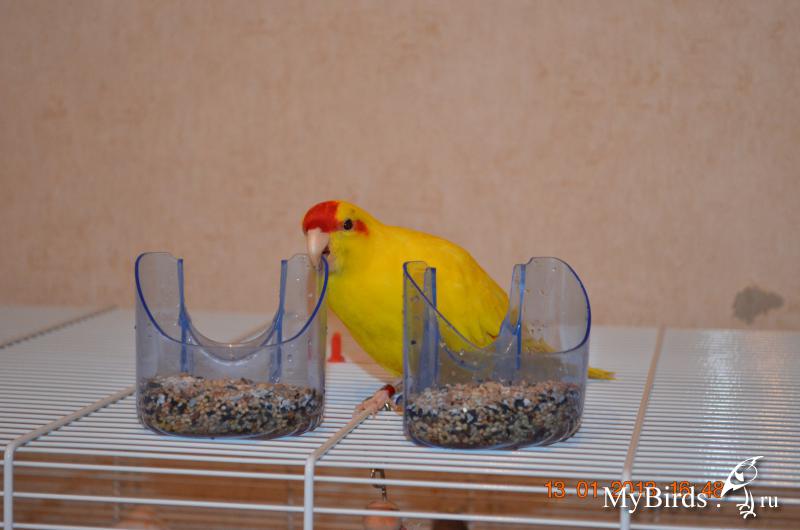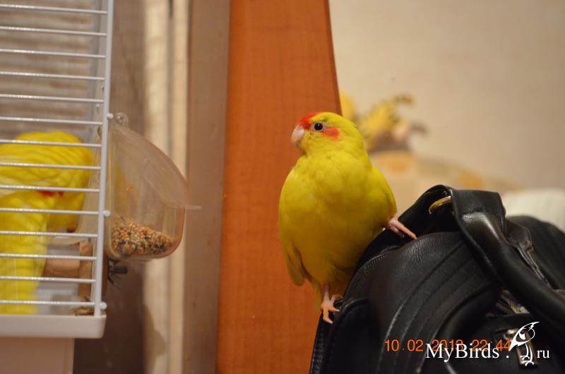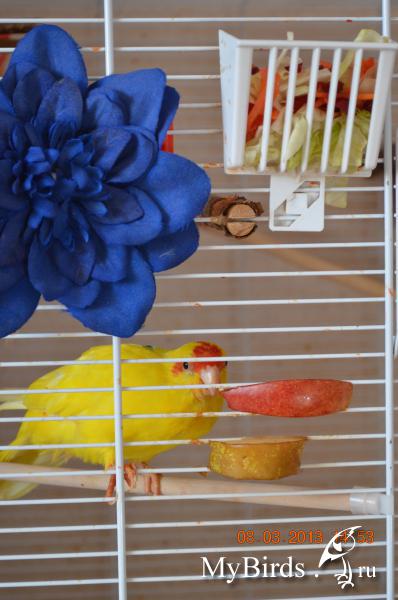 Пушистое солнышко Опубликовано 12 февраля, 2013 Автор #132 Опубликовано 12 февраля, 2013 (изменено) Моя парочка, похоже максимально смирилась с близким обществом друг друга. Прекраснейшим образом гуляют вместе. Общаются. Иногда даже ухитряются где-нибудь на шкафу заняться любовью. Правда чаще всего эти занятия у них заканчиваются дракой. Клетки тоже делят и жадничают. На прогулке по уже введенной традиции по названием "обожри соседа" ходят друг к другу проверять, что есть вкусненького в чужой клетке. Потом вспоминают о соседе и начинают друг друга из своих клеток выгонять. Флорька постоянно ищет себе новые способы развлечения. Полюбила сидеть на моем стуле у компьютера. Лазить по моим ногам покая я сижу в интернете, копошиться за спиной на сидении. На днях облюбовала мою сумку, сидеть на ней может часами, все пытается понять как пролезть внутрь. И я так подозреваю, что еще и точит ее где-то потихоньку. Еще тянет ее постоянно в ящик с колготками.В общем настоящая блондинка. А Торик нашел себе другое развлечение, подрабатывает газонокосилкой. Приношу им иногда травку проросшие стебельки овса. Так он их не ест, а стрижет своим клювом прям как комбайн. За день может целую чашку травы так подстричь Изменено 12 февраля, 2013 пользователем Пушистое солнышко