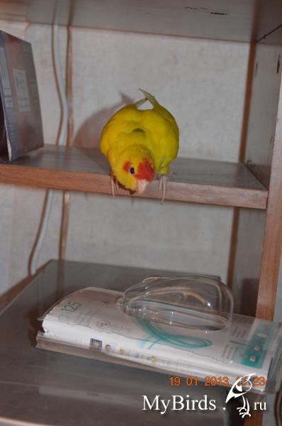 Пушистое солнышко Опубликовано 23 января, 2013 Автор #128 Опубликовано 23 января, 2013 Сегодня отписались нам хозяева Горушки, похоже парень легко влился в новую семью, с девочкой во всю мосты налаживает. В общем слава богу у него все хорошо. И у нас все лучше и лучше. Торик всюду летает с Флорькой. Флорька благосклонно внемлит его кудахтанью. Но нагулявшись вместе лезут все же оба каждый в свою клетку.Один раз поссорились, Торька завалился в гости к жене и пытался Флорьку выгнать из большой клетки в маленькую (как привык это проделывать с Горушкой). Пришлось вмешаться и высказать все, что я думаю по этому поводу. Торька надулся, бросил выгонять Флорьку и улетел к себе в холостяцкую берлогу. В общем отношения потихоньку налаживаются, но жить вместе им пока рано. Что ж подождем. Нам торопиться собственно некуда.