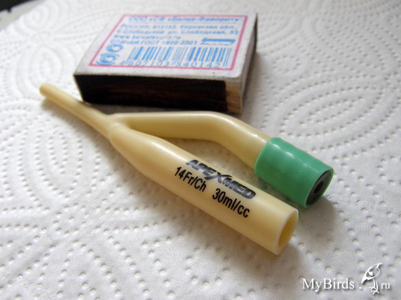 joymann Опубликовано 14 апреля, 2015 #16 Опубликовано 14 апреля, 2015 пробовал несколько уретральных катетеров - один жесткий, другой толстый сейчас напишу модель какую конкретно использую, это моя проверенная рекомендация для "запечатанных пробкой" голубей: http://shop.medikom.su/catalog/6226/34896/Катетер Фолея CH/FR 14 с кончиком Тиманн двухходовойпокупал в обычной аптеке на приложенной витринной картинке надут шарик - для кормления птицы шарик не надуваем (шарик надувают специально после заведения катетера в мочевой пузырь, чтобы моча стекала только в катетер, а не в уретру) дистальный конец катетера тщательно обработан и закруглен для обеспечения атравматичной постановки; оптимально жесткий для прохождения суженной части уретры, после установки размягчается под воздействием температуры окружающих тканей, что сводит к минимуму возможный дискомфорт на приложенном фото моя сборка: для каши использую сам "дистальный конец", виден болтающийся мешочек для надувания замка-шарика, он тонкий и не мешаетна конце катетера два боковых отверстияобмакиваю катетер в вазелиновой масло, выгоняю воздух, мягко аккуратно без усилий покручиваю катетер и ищу сегодняшнюю щель между пробкой и стенкой гортани, обычно она находится, и катетер свободно заходит в зоб для введения лекарств ставлю срезанную на 30% трубку катетерапри введении надо аккуратно покрутить срезанную трубку чтобы снова угадать сегодняшнее направление щели между пробкой и стенкой гортанилучше, конечно, такой же правильный круглый конец (почему обрезок - внезапно "временно" пропали ЭТИ катетеры из продажи в моих краях, но это другая тема) еще раз - это мой личный опыт, на обязательности использования катетера Фолея не настаиваю 1