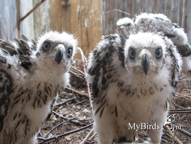 Почему гнездарь лучше ловленной птицы? У него больше возможностей для обучения. Он будет делать все, чему Вы его научите. А ловленная птица, имея негативный опыт охоты, например, на зайца, может отказаться брать крупную добычу (однако ловленные молодые птицы уже имеют большой опыт охоты на посильную добычу и обычно не требуют серьезных физических тренировок для развития мускулатуры - ред.). Лучше, если Вы с другом будете выращивать гнездарей вдвоем, обеспечив им всегда свежую подстилку из хвои или листьев. Гнездо должно быть приподнято на метр от земли, находиться в хорошо проветриваемом, затемненном, укрытом от дождя вольере. Гнездари, взятые перед вылетом, едят сами, поэтому ощипанные и потрошеные тушки птиц (ворон, голубей) Вы выкладываете в гнездо и уходите, забирая остатки трапезы через час.