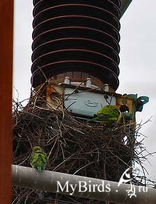 Гнездо квакеров на линии электропередач Автор JustUptown (2009 год) http://www.flickr.com/photos/justanuptowngirl/ |