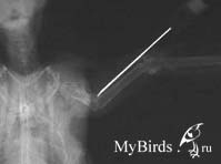 Фатальный вывих грудино-клювовидного сустава (art. Sternocoracoidea) сложно распознать при нормальной вентродорсальной рентгеноскопии. Когда крыло вытянуто, разделение клювовидного отростка и грудины практически незаметно.