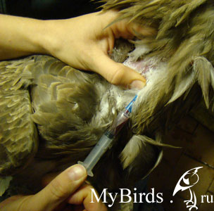 К сожалению, в нашей стране число ветеринарных врачей, умеющих брать кровь у птиц, ничтожно мало. Есть врачи, которые берут кровь только под наркозом. В таких случаях должен применяться газовый наркоз изофлураном, он достаточно безопасен для птицы и позволяет сделать забор крови с наименьшим стрессом для пациента и безопасностью для врача и его ассистентов (если речь идет о крупных птицах, способных нанести человеку травмы).