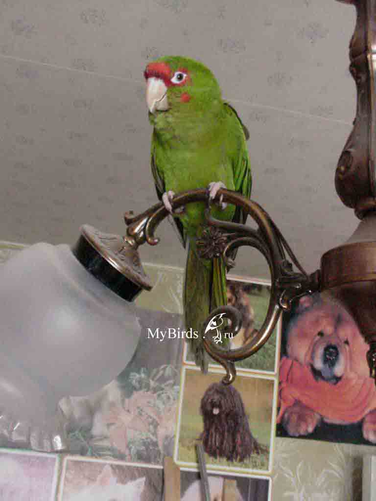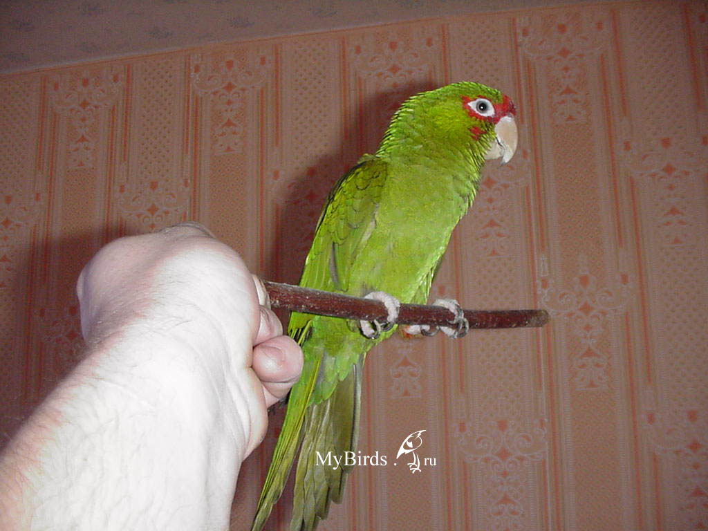 Я много лет держу попугаев, и в моей квартире всегда найдется место очередному питомцу. Так, 15 января 1990 года у меня появилась краснолобая аратинга - самочка, названная ее первым хозяином мужским именем "Петрушка". Чтобы скоротать плавание, моряки часто заводят братьев меньших, отдавая им (и получая взамен) нерастраченную в походе любовь и внимание. Подобным образом в конце зимы 1989 года в Беларуси появилась перуанская красавица. Птица оказалась сообразительной, однако, с характером. Обладая сильным клювом и приличным по громкости криком, а, также став за время плавания преданной подругой моряка, Петрушка быстро превратила радость его возвращения в лоно семьи в настоящий кошмар. Жена моряка не смогла долго выдержать яростные атаки и вовсе не слабенькие укусы аратинги, а также часами не смолкающий крик бедного попугая в случае отсутствия хозяина в зоне его видимости. Поэтому и месяца не прошло с момента приезда птицы в Беларусь, а Петрушке пришлось привыкать к новым людям.