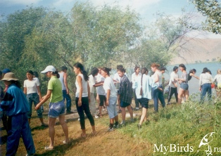Старый ПАЗ-ик мчится по трассе. Справа, слева, впереди и сзади выжженная солнцем пустыня. Но я не люблю её так называть. Я говорю степь. Потому что весной здесь трава по колено. И трава эта редко бывает зелёной. Она либо сплошь кроваво-красная, когда цветут маки, либо голубая, когда зацветают бурачниковые и ещё какие-то степные колокольчики, либо жёлтая, когда цветут тюльпаны. Сейчас это всё превратилось в мелкую труху и соломенно-жёлтым слоем покрывает песок и глину. Весьма познавательно изучать растительность пустыни в этом её качестве, но, кажется, нас именно за этим сюда заслали… Нам скучно, и мы перепели уже всё. Дошли до государственного гимна. Вспоминаем второй куплет. Автобус сворачивает куда-то влево, едет по грунтовой дороге, и мы задыхаемся в пыли. Куда-то проваливаемся и вдруг оказываемся в широкой речной долине, лежащей между горами. Хм, вот это да! А я и не думал, что мы по горам ехали. Несколько петляний по долине, и автобус подъезжает к бирюзовой ленте реки Или. Столько лет я мечтал сюда попасть! Запоминаю ощущения. Берег оторочен верхушками леса, как его описали где-то в литературе – «лес розово-серебристый» - тугаи. Серебристые листики колючего лоха (или по-местному – джигиды), скрывающие старые кривые ивы и тонкие паутинки тамариксов, увенчанных розовыми метёлками. Красиво! И за всем этим ослепительно-голубая река. Лес, шириной три метра и длиной несколько сотен километров. Чуть дальше от берега, над обрывом, под которым прячутся тугаи, десятиметровой ширины кайма колючих пустынных кустарников в рост человека – чингиля, акации, редко барбариса. Совершенно непроходимая и тоже изрядно подсохшая. Из-под обрыва выныривает совершенно чёрный парень, я его не узнал сначала, но это наш, Даурен, его на неделю раньше забросили.