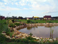Тут же рядом идёт строительство посёлка из гостевых домиков, планируется постройка восьми гостевых домиков, в которых можно будет жить некоторое время прямо на территории парка птиц. К зиме планируется завершение двух домиков и бани.
