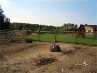 Рядом с вольерами для хищных птиц построен небольшой загончик, где хищников (нельзя сказать «ловчих птиц», так как вместе с балобаном, сапсаном и ястребом – перепелятником, на присадах сидят канюк и черный коршун) содержат на присадах для ловчих птиц и на т.н. полётно-трассовом устройстве (шнур от должика прикреплён к металлическому проводу, идущему от домика птицы до присады). Посетителей от птиц отделяет только низкий заборчик, что позволяет без помех, с близкого расстояния рассмотреть птицу. Сами хищники при этом не бьются в истерике при приближении людей.