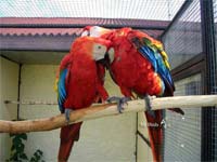 Ну и, конечно, жемчужина парка птиц - коллекция попугаев. Практически все попугаи не боятся человека, более того, они охотно идут на контакт с посетителями. Специально, чтобы посетители не кормили птиц «нездоровой снедью», у входа можно купить семечки и кормить птиц ими. В этом году получено восемь птенцов розовых какаду, один какаду гоффина, и традиционно множество александрийский попугаев.